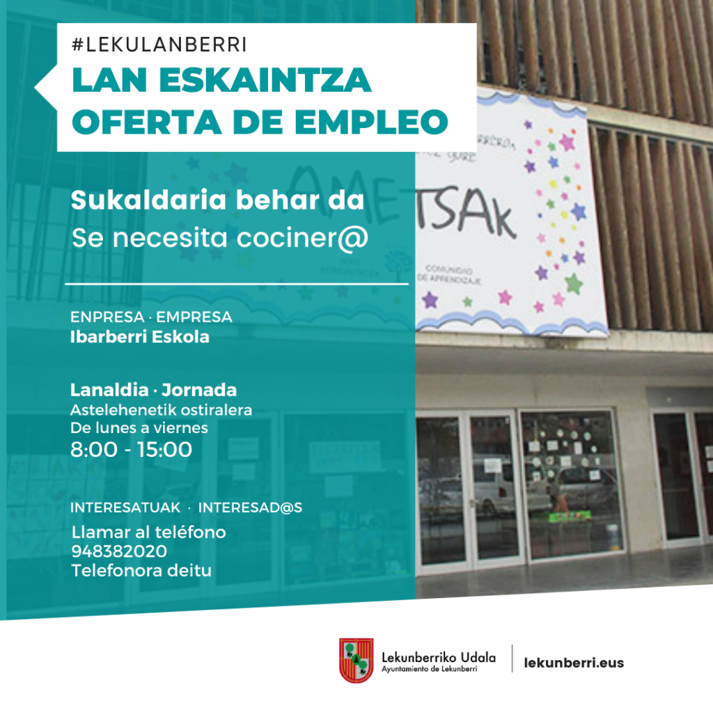 Lan eskaintza: lan poltsa sortzeko gerokultorea behar da, Lekunberriko Eguneko Zentroan lan egiteko. CV eta informazioa: dlekunberrilarraun@gmail.com 948980437 / 616397044 Silvia Zehaztasun guztiak hemen: